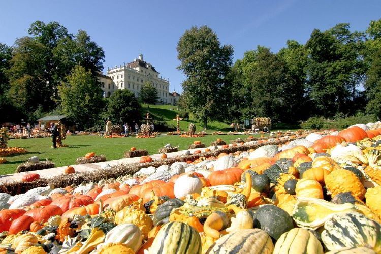 Hunderttausende Kürbisse zieren jedes Jahr die weltgrößte Kürbisausstellung in den Gärten rund um das Ludwigsburger Schloss. Kunstvolle Kürbisfiguren zu wechselnden Themen und köstliche Kürbisgerichte zaubern schöne Herbsttage. Beim Bummel durch die Ausstellung gibt es mehr als 600 Sorten der beliebten Herbstfrüchte wie bunte Zierkürbisse oder leuchtende Schnitzkürbisse zu entdecken.