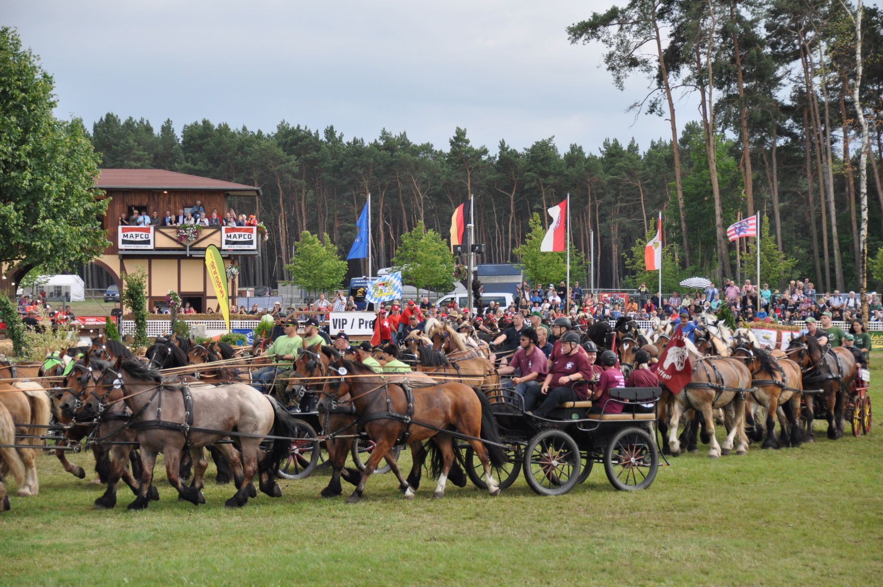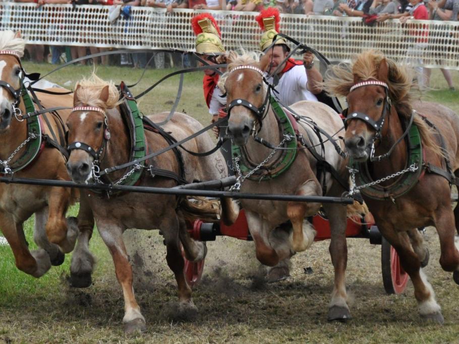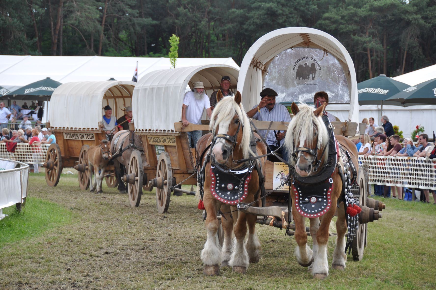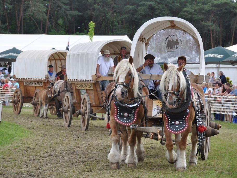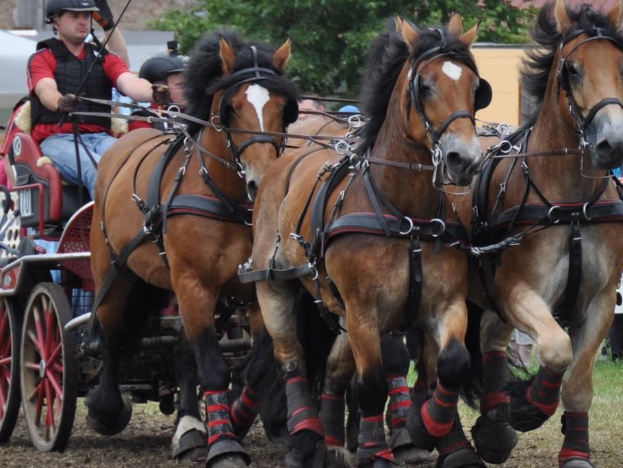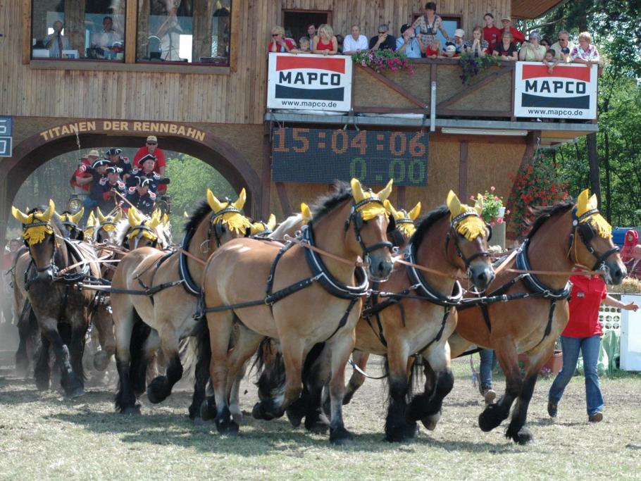 Titanen der Rennbahn, das steht für eine Pferdesportveranstaltung mit und rund um Kaltblutpferde. Zwei Tage lang Programm, das seinesgleichen sucht. Wagenrennen, Hindernisfahren, Zugleistung und phänomenale Schaubilder werden Sie begeisterten. Gänsehaut bei den Quadrillen vorprogrammiert. "Das ist der Wahnsinn", "Das muss man live erleben", unglaublich, was sich die Veranstalter jedes Jahr aufs Neue wieder einfallen lassen". Kommen Sie mit, vielleicht gewinnen Sie sogar bei der Tombola ein Kaltblutfohlen. Sichern Sie sich die heißbegehrten Karten! Wie immer erwartet Sie ein außergewöhnliches Wochenende. Zum letzten Mal! "Bitte genügend Taschentücher mitnehmen"