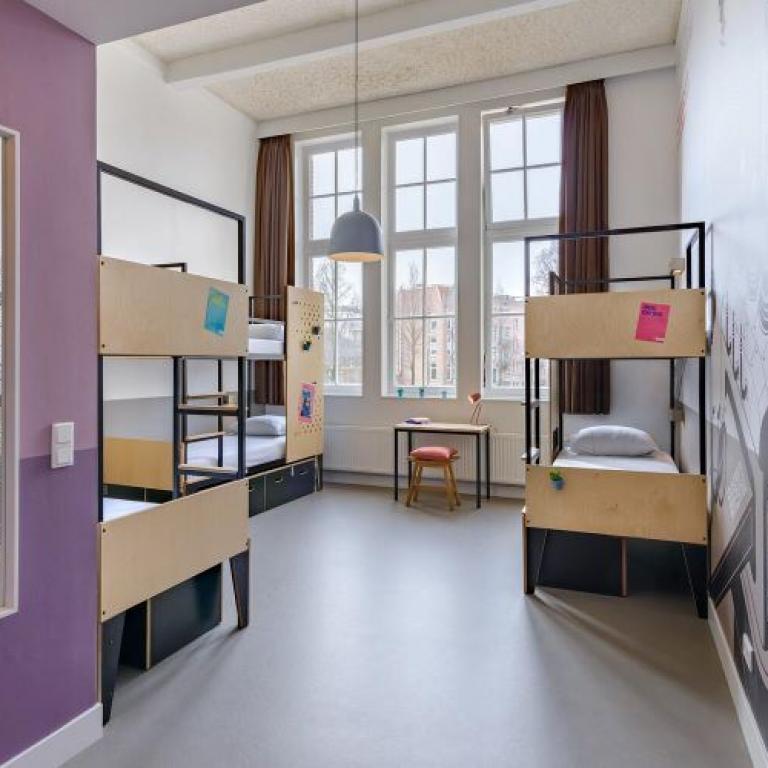 befindet sich in einem Viertel mit typischem Amsterdamer Flair, ca. 10 Minuten mit der Straßenbahn vom Stadtzentrum entfernt. Das Hostel verfügt über ein eigenes Café/Restaurant und eine schöne Terasse. Zur Unterhaltung stehen Kicker, Billard und ein Basketballcourt zur Verfügung. Alle Zimmer verfügen über Dusche/WC. Schüler werden in 4-8-Bettzimmern untergebracht, für die Lehrer stehen Einzel- oder Doppelzimmer zur Verfügung.