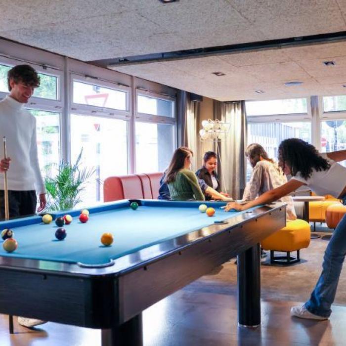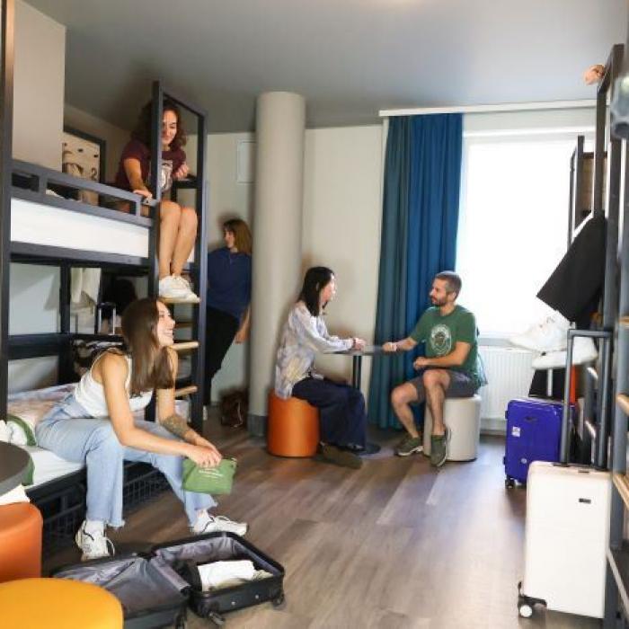 Das A&O Hostel in Köln bietet eine moderne Unterkunft für Schüler mit einer Vielzahl von Annehmlichkeiten, die den Aufenthalt komfortabel und unterhaltsam machen. Die zentrale Lage im Herzen von Köln macht das Hostel zu einem idealen Ausgangspunkt für Eure Erkundungen der Stadt. Die Unterbringung der Schüler erfolgt in 4- bis 8-Bettzimmern mit DU/WC, Begleitpersonen in Einzel- bzw. Doppelzimmern mit DU/WC und TV. Zur Ausstattung gehören eine 24-Stunden-Rezeption, eine Hotelbar, Billard, Kicker und kostenfreies Highspeed-WLAN.