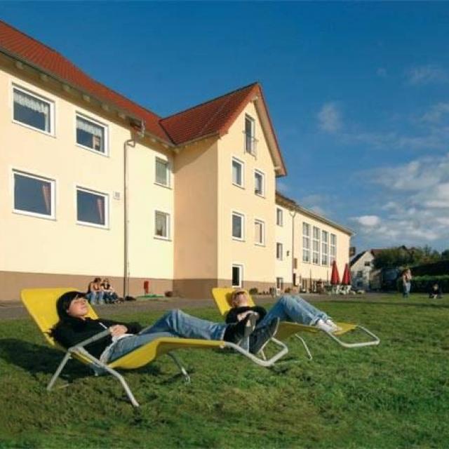 Das beliebte und weithin bekannte Jugend-Freizeithotel liegt in einem reizvollen Hochtal der Vorderrhön, südlich des Thüringer Waldes. Sonnig und inmitten unberührter Natur bietet Euch das Hotel ein großes Freizeitangebot. Alle Zimmer sind modern und gemütlich eingerichtet sowie mit Dusche und WC ausgestattet. Zu den Freizeitmöglichkeiten im Haus gehören eine Kegelbahn, Billard, Darts, Tischfußball, und Tischtennis. Außerdem könnt Ihr Euch verschiedene Gesellschaftsspiele ausleihen. Im Übrigen steht auch ein großer Flachbildschirm in der modernen Bar für das gemeinsame Erleben von Sportevents oder dem Vorführen Eurer eigenen Fotos und Videos zur Verfügung. Für all diejenigen, die auch im Urlaub nicht auf das Internet verzichten wollen, steht auch DSL (WLAN) zur Verfügung. Direkt hinter dem Haus befindet sich ein Volleyballplatz. Das 6000 m2 große Gelände bietet auch viel Platz für verschiedene Ballsportarten wie Federball, Fußball und mehr. In den beiden umliegenden Seen könnt Ihr baden, angeln, tauchen und nach einem erlebnisreichen Tag auf der Liegewiese entspannen!