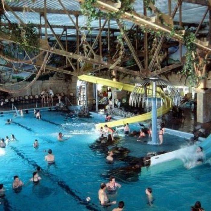 Im Subtropischen Badeparadies kann man nach Herzenslust toben: 214 m lange Reifenrutsche, 3-er Wellenrutsche, 156 m Superrutsche, 70 m Turborutsche, 10 m hohe Wasserspiellandschaft "Aqua-Play", Wildwasserkanal und vieles mehr. (tägl. Eintritt in unserem Programm P1 enthalten).